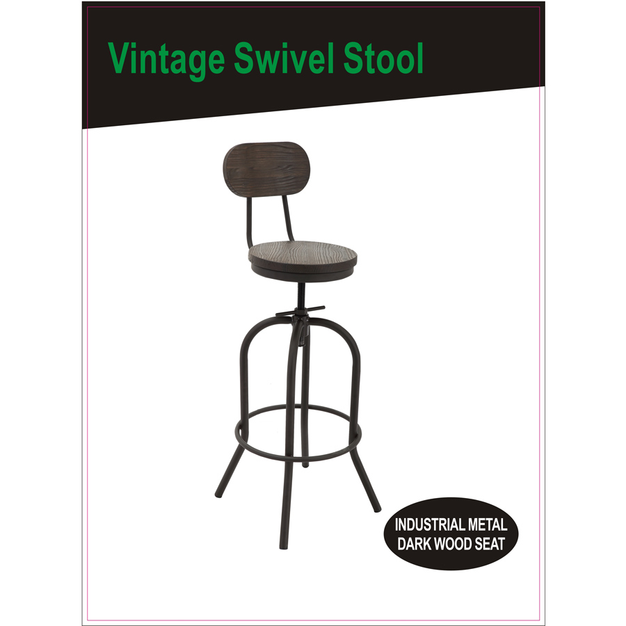 181010 Vintage Swivel Dark Wood Seat